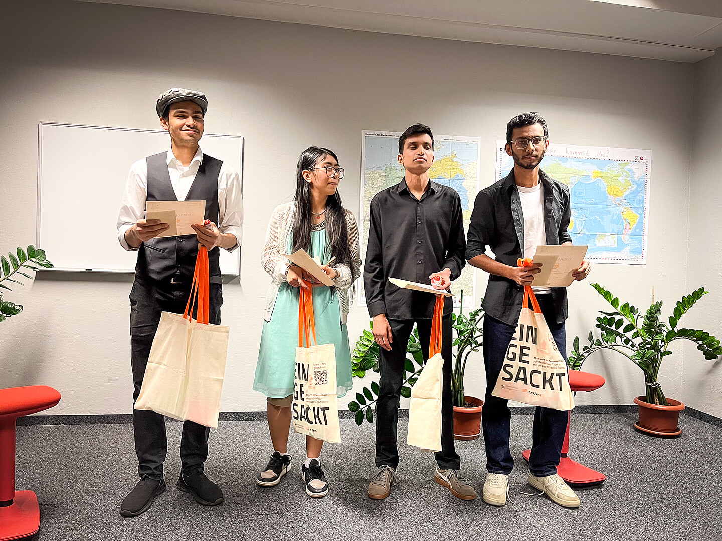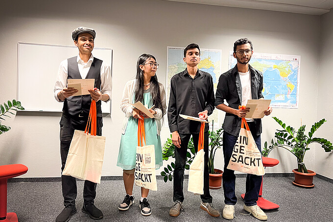 Die Jury, bestehend aus Ellen Leuschner, Marina Matthey, Erich Cella und Dr. Stefan Kühne, bewertete am Ende die Beiträge und kürte die Gewinnerinnen und Gewinner. Alle Jurymitglieder arbeiten eng mit den internationalen Studierenden zusammen. Sie lehren und unterstützen sie sowohl beim Studium als auch im Leben in Deutschland.