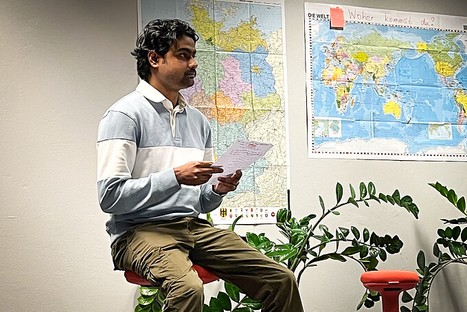 Der Vorlesetag am Studienkolleg wurde in Form eines Wettbewerbs durchgeführt. Unsere Studienkollegiatinnen und -kollegiaten präsentierten ihre Beiträge entweder in Gruppen oder einzeln. Die Teilnehmenden stammen aus verschiedenen Ländern, unter anderem aus Indonesien, Pakistan, der Ukraine und Indien. Mit dem emotionalen Vortragen von Geschichten und eigenen Texten, dem Singen von Weihnachtsliedern sowie der kreativen Präsentation von Legenden sorgten sie für ein abwechslungsreiches Programm.